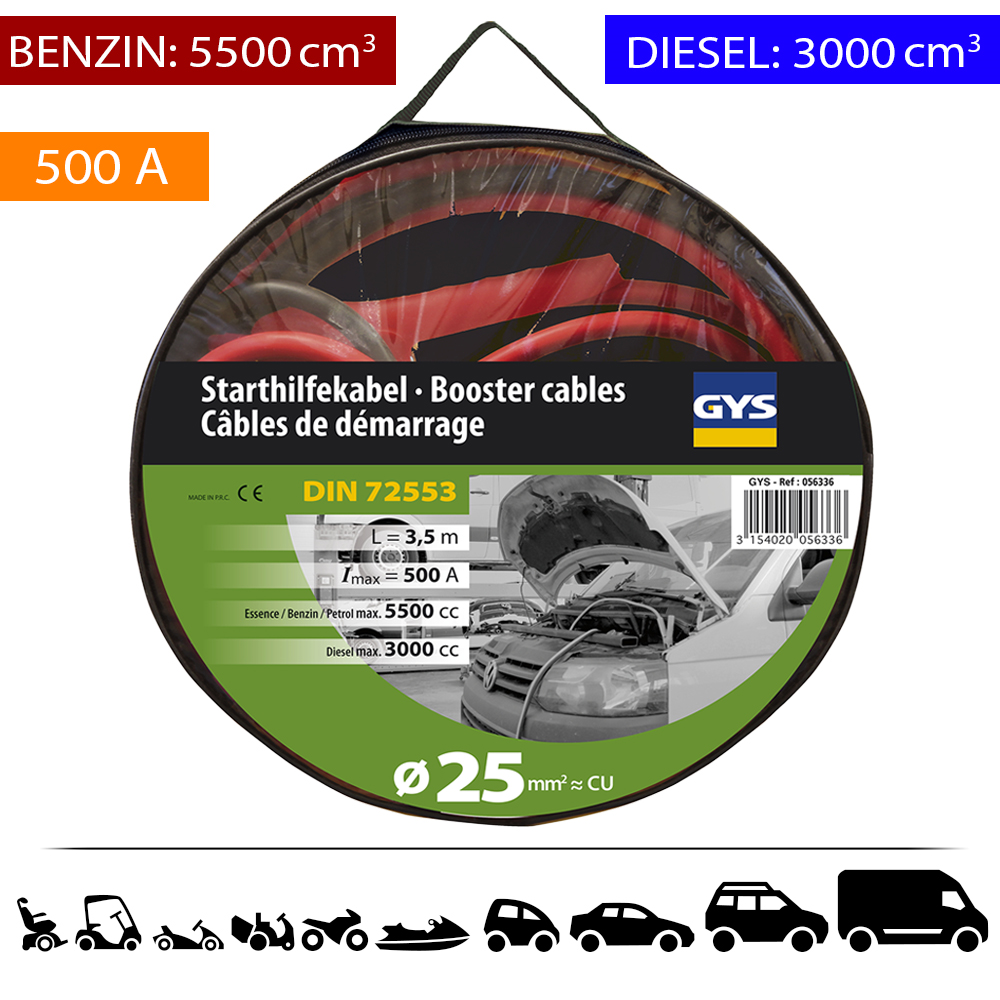 A GYS hosszú és ellenálló indítókábelt hordtáskával szállítjuk, így könnyen szállítható és praktikusan tárolható.